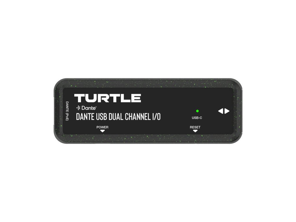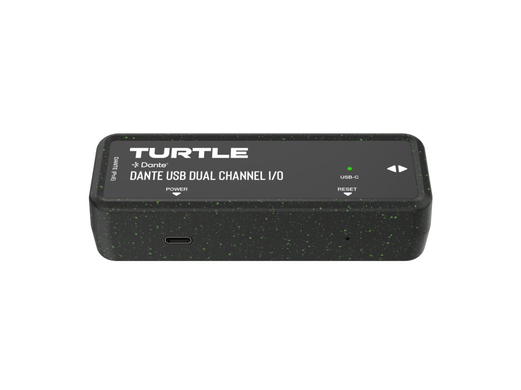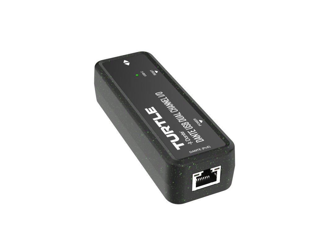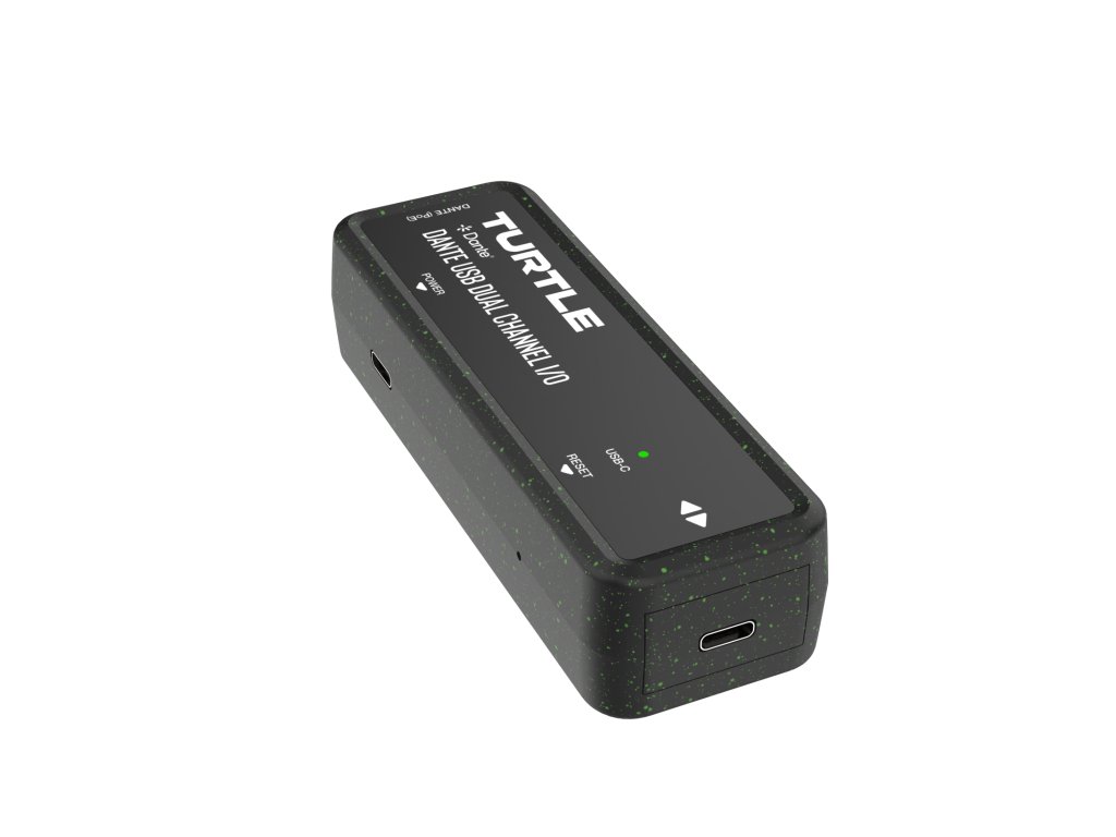 Turtle AV TAV-D2USB Dante Dual Channel USB-C I/O Adapter. Made from 90% recycled plastic, including 5% Ocean Bound Plastic.