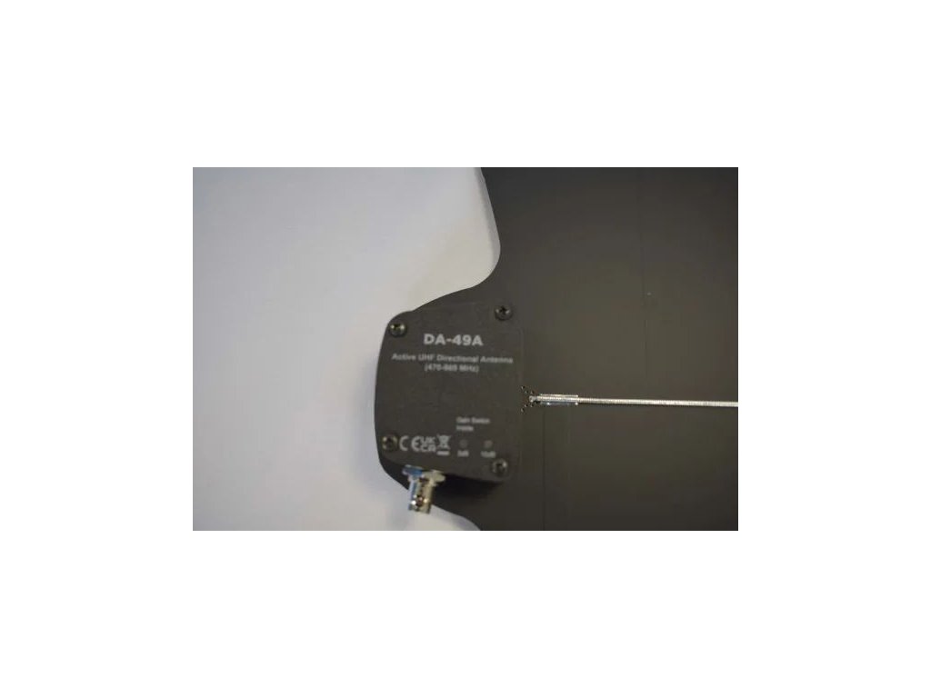 Aktivní směrová anténa, frekvenční pásmo 470-960MHz, efektivní úhel 100°, zisk 10dB, integrovaný anténní zesilovač s nastavitelným ziskem 3dB/10dB s LED indikacíDoplňkové parametry
