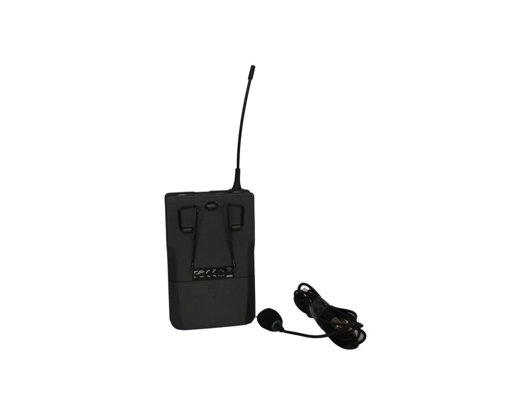 Kapesní bezdrátový mikrofonní vysílač s klopovým mikrofonem, 1440 volitelných frekvencí v UHF pásmu 614-650MHz, 6 předdefinovaných skupin s až 22 kompatibilními kanály, volitelný vysílací výkon 10mW / 50mW. Multifunkční vypínač pro zapnutí / vypnutí a umlčení, volitelná funkce automatického vypnutí umlčeného mikrofonu po 1, 10 nebo 30 minutách, LCD displej s indikací nastavení a stavu baterie, volitelný zámek konfiguračních tlačítek. Napájení ze standardních alkalických AA baterií nebo NiMH akumulátorů, možnost dobíjení akumulátorů originálním nabíječem přímo ve vysílači bez nutnosti jejich vyjmutí.Doplňkové parametry