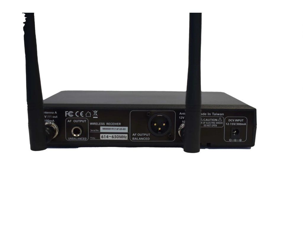 Bezdrátový mikrofonní přijímač, 1440 volitelných frekvencí v UHF pásmu 614-650MHz, 6 předdefinovaných skupin s až 22 kompatibilními kanály. Diverzitní příjem, funkce skenování přenosového pásma pro snadné nalezení volného kanálu, nastavitelná citlivost příjmu v rozsahu -5dB...+10dB. Patentovaná technologie ultrazvukové synchronizace nastavení přijímače a vysílače včetně nastavení vstupní citlivosti mikrofonu, intervalu automatického vypnutí vysílače a vysílacího výkonu. Podsvětlený LCD displej s indikací nastavení a stavu baterie vysílače, aktivní antény, RF i AF úrovně, výstupní úrovně. Odstup S/N >105dB, THD <0.6% (1KHz). Výstupy 1x symetrický XLR (Mic/Line) + 1x nesymetrický Jack 6,3mm (Line). Odnímatelné 1/2vlnné antény s konektory BNC.Doplňkové parametry