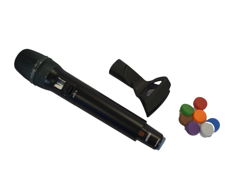 Ruční bezdrátový mikrofonní vysílač, 1441 volitelných frekvencí v UHF pásmu 614-650MHz, 6 předdefinovaných skupin s až 23 kompatibilními kanály, volitelný vysílací výkon 10mW / 50mW. Multifunkční vypínač pro zapnutí / vypnutí a umlčení, volitelná funkce automatického vypnutí umlčeného mikrofonu po 1, 10 nebo 30 minutách, LCD displej s indikací nastavení a stavu baterie, volitelný zámek konfiguračních tlačítek. Napájení ze standardních alkalických AA baterií nebo NiMH akumulátorů, možnost dobíjení akumulátorů originálním nabíječem přímo ve vysílači bez nutnosti jejich vyjmutí.Doplňkové parametry