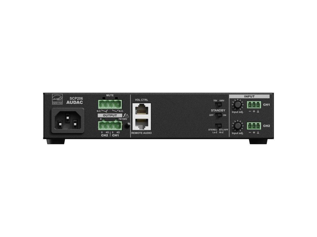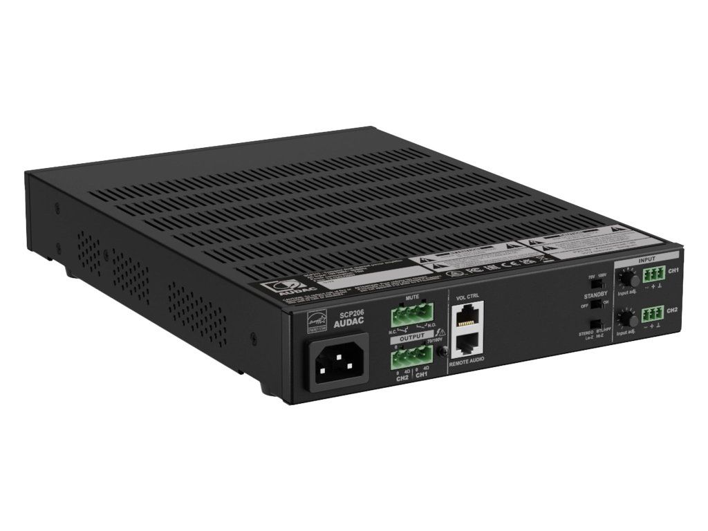 Audac SCP206 Koncový zesilovač 2x60W @ 4Ohm / 1x120W @ 100V (RMS), digitální topologie Class-D