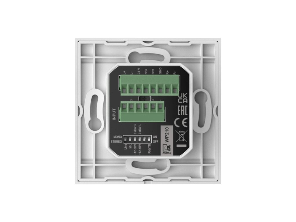 Nástěnný vstupní panel, 1x Mic vstup (XLR), 1x stereo Line vstup (Jack 3,5mm), nezávislé nastavení úrovně pro každý vstup s možností mixování. Alternativní možnost připojení pro oba vstupy pomocí svorkovnice na zadní straně. Skryté DIP přepínače pro volbu režimu stereo/mono, volitelný Lo-Cut filtr, phantomové napájení pro mikrofonní vstup a výstupní úroveň nezávisle pro L a R kanál. Připojení datovým kabelem kategorie CAT5E nebo vyšší až na vzdálenost 100m. Materiál ABS plast + tvrzené sklo. Barva bílá.Doplňkové parametry