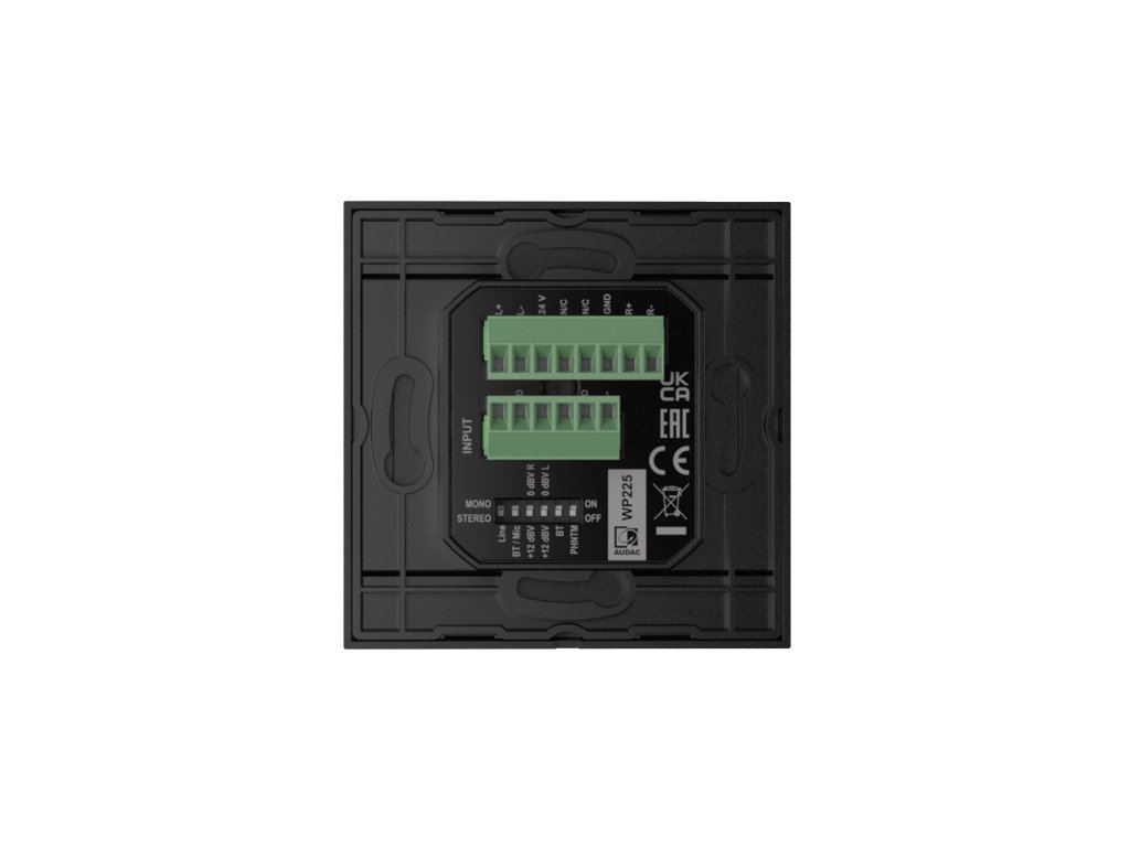 Nástěnný vstupní panel, 1x Mic vstup (XLR), 1x stereo Line vstup (Jack 3,5mm), alternativní možnost připojení pro oba vstupy pomocí svorkovnice na zadní straně. Nezávislé nastavení úrovně pro každý vstup s možností mixování, konektivita Bluetooth v5 s možností nastavení unikátního ID pro instalace s více panely, 1x tlačítko a LED indikace pro párování zařízení. Skryté DIP přepínače pro volbu režimu stereo/mono, volitelný Lo-Cut filtr, phantomové napájení pro mikrofonní vstup, povolení BT a výstupní úroveň nezávisle pro L a R kanál. Připojení datovým kabelem kategorie CAT5E nebo vyšší až na vzdálenost 100m. Materiál ABS plast + tvrzené sklo. Barva černá.Doplňkové parametry