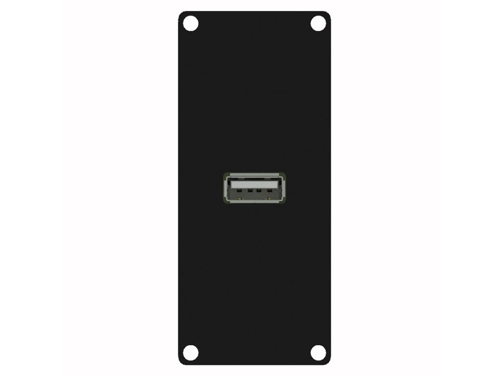 Konektorový modul systému CASY, vpředu 1x USB2.0A (samice), vzadu 1x 4pin svorkovnice, šířka 1 jednotka, materiál ocel tl. 1,5mm, barva černáDoplňkové parametry