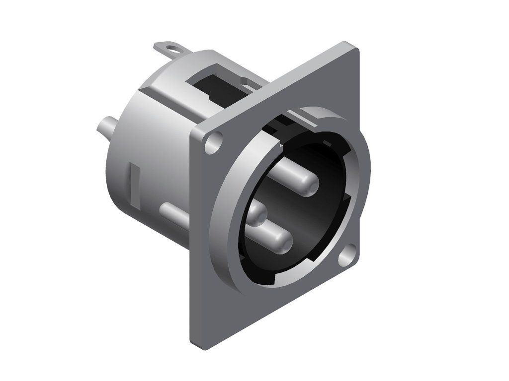 Panelový konektor XLR 3pin samec, kovový, D-size, pájecí kontakty. Kusový prodej.Doplňkové parametry