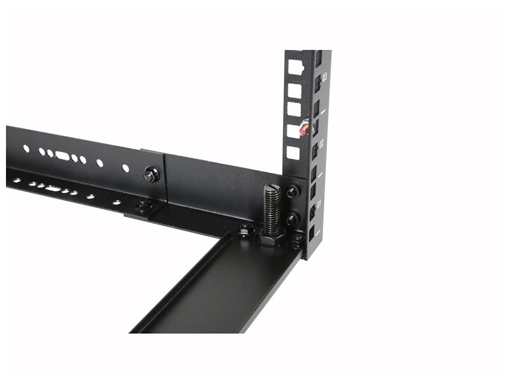 Rozvaděč 19" otevřený 9U pro stojanovou / nástěnnou / stropní instalaci nebo vestavbu do nábytku, hloubka nastavitelná v rozsahu 300-450mm, číslované výškové pozice. Materiál ocel tl. 2mm, nosnost 100kg (stojící) / 50kg (zavěšený), rozebíratelný, dodávka v rozloženém stavu. Součástí balení 4x stavitelná noha, 4x kotva do zdi M8, 24x sada klecová matka + šroub. Rozměry (ŠxVxH) 520x425x300-450mm, hmotnost 8,5kg, barva černá.Doplňkové parametry