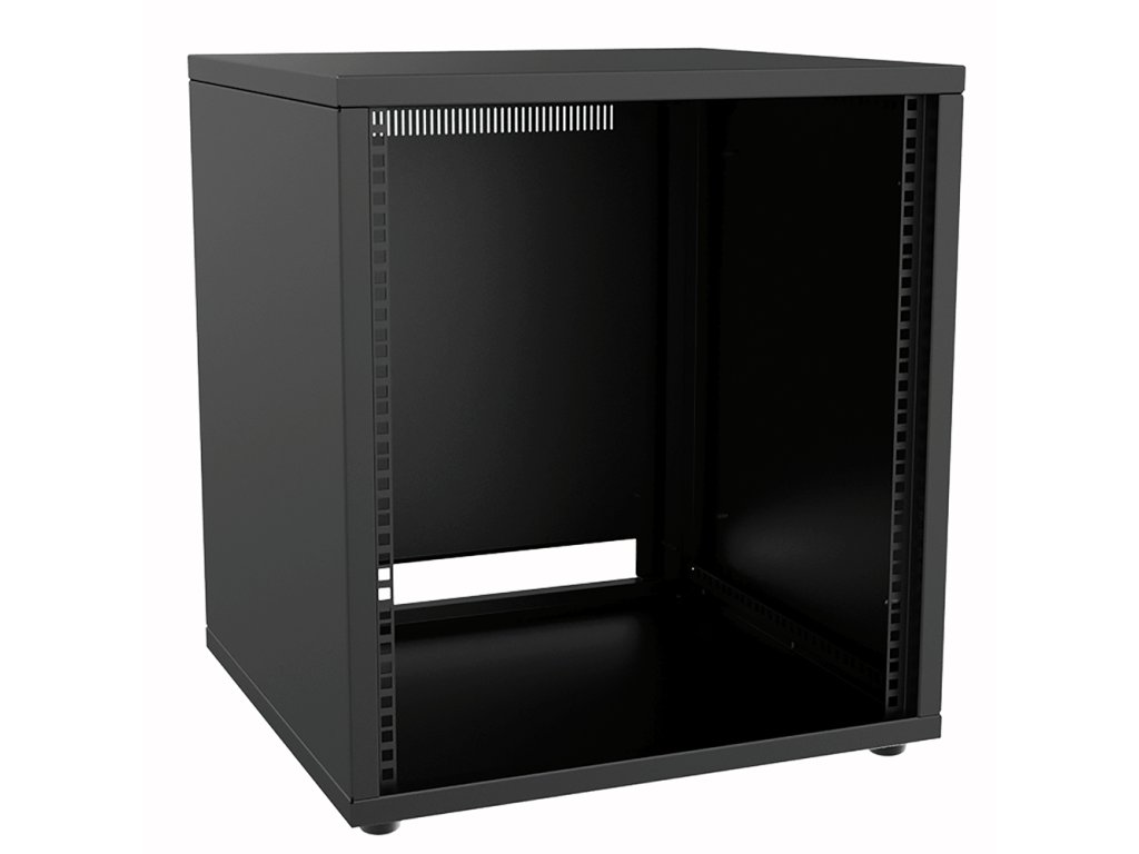 19" rack 12U, 1 pár fixních vertikálních lišt, odnímatelná zadní stěna s otvory pro přívod kabelů ve spodní části a pro ventilaci v horní části. Materiál ocelový plech tl. 1,5mm, rozebíratelný, dodávka v rozloženém stavu. Rozměry (ŠxVxH) 540x587(605)x500mm, využitelná hloubka 475mm, hmotnost 20,5kg, barva černá.Doplňkové parametry