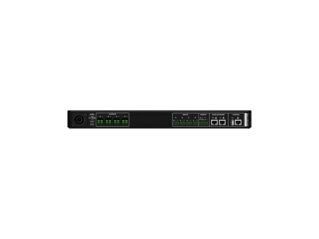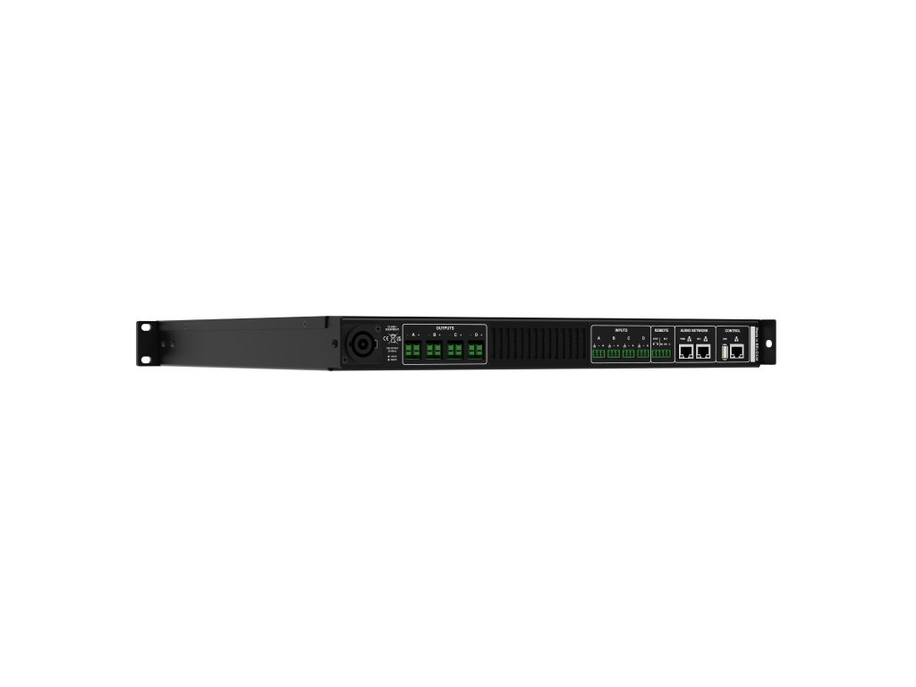 Digitální výkonový zesilovač 6kW s rackovou výškou 1U, integrovaný maticový DSP procesor, konektivita WiFi, LAN, USB, interní přehrávač Spotify / AirPlay, příprava pro volitelné rozhraní Dante/AES67. Možnost nezávislého provozu každého kanálu do nízkoimpedanční zátěže 2-16 ohm (Lo-Z) a do 100V / 70V rozvodů (Hi-Z), výstupní výkon 4x1500W (2-8 ohm) / 4x1000W (16 ohm) / 4x1500W (100V). Plně parametrický 64-bitový DSP procesor s matrix-mixerem 12x4, FIR filtry a zpožděním až 250ms na kanál. Integrovaný WiFi hotspot pro možnost přímého připojení mimo IT prostředí uživatele, lokální i vzdálená správa přes LAN i cloud. Barevný OLED displej s otočným enkodérem pro manuální nastavení a kontrolu, webové ovládací rozhraní, možnost integrace přes řídicí příkazy TCP/IP, log. I/O. Topologie Class-D s technologií GlidePath™, frekvenční rozsah 1Hz-22kHz, THD+N 0,05%, odstup S/N 118dB (A), damping factor 4000, latence 1ms.Doplňkové parametry